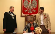 Donosy, 19-12-2019; Zdzisław Kuliś Siedząc tak w czwórkę komentowali przebieg ceremonii ślubnej i nie spodziewali się, że to tak szybko bez specjalnych emocji przejdzie. Bo to jest urząd, a nie kościół mówił Franek, który też na ślubie cywilnym nigdy wcześniej nie był, ale wiedział, że to tylko formalność, bo wiele słyszał od tych, którzy go brali. Justynka natomiast nic nie mówiła, tylko się znacząco uśmiechała, co nawet nie uszło uwadze Franka. Wszyscy wspominali rodziców, którzy zostali w domu i zapewne ich ciekawość zżera...
