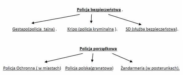 Władza sprawowana była przez SS i niemiecką policję, która dzieliła się na policje bezpieczeństwa i porządkową. Ci pierwsi zwalczali ruch oporu, drudzy pacyfikowali wsie.