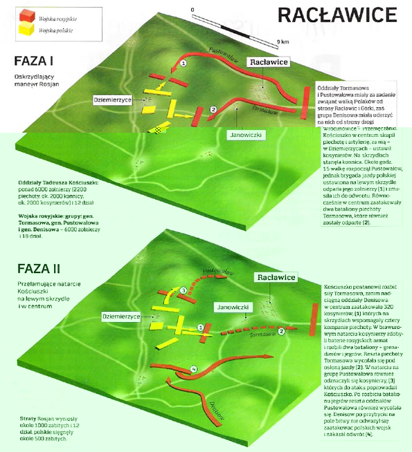 przebieg bitwy pod Racławicami 4 kwietnia 1794 r. (źródło "Zwycięstwa Oręża Polskiego" - wyd. RM)