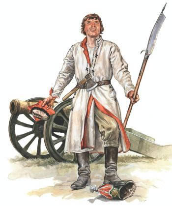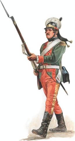 żołnierz rosyjski uzbrojony w muszkiet skałkowy z bagnetem (źródło "Zwycięstwa Oręża Polskiego" - wyd. RM)