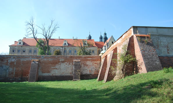pałac opatów, mury obronne - widok od wschodu (fot. Andrzej Powidzki)