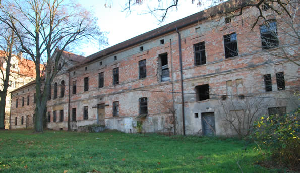 dawny szpital i brama - obecnie mieszkania (fot. Andrzej Powidzki)