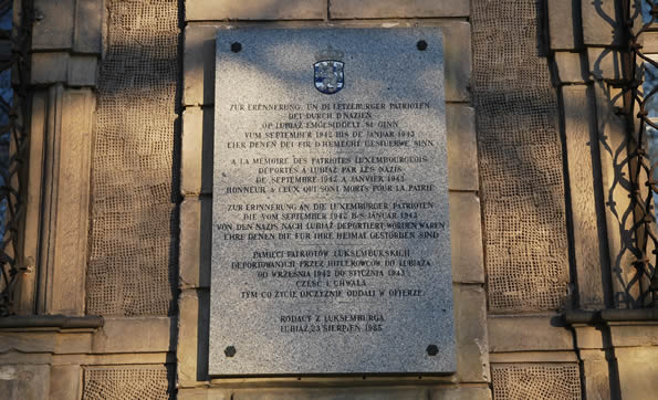W okresie od września 1942 do stycznia 1943 na terenie opactwa pracowali w nazistowskim obozie pracy obywatele Luksemburga, którzy przez niemiecką administrację cywilną zostali przymusowo przesiedleni (deportowani) do Lubiąża. W późniejszym okresie część luksemburczyków wywieziono do obozów koncentracyjnych m.in. Gross-Rosen, natomiast pozostałe osoby zginęły na miejscu. Ich los i martyrologię upamiętnia dwujęzyczna tablica umieszczona na głównej fasadzie budynku i mogiła na cmentarzu parafialnym w Lubiążu.