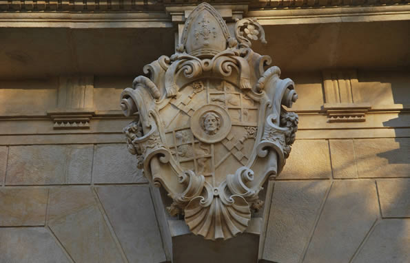 kartusz herbowy opactwa, nad bramą do pałacu (fot. Andrzej Powidzki)
