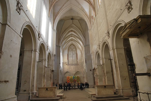 Każdego, kto dzisiaj wkracza do wnętrza kościoła klasztornego Wniebowzięcia Najświętszej Marii Panny w Lubiążu, uderza bardzo smutny widok. Poza wyremontowaną posadzką, z dawnego wyposażenia i wystroju na miejscu pozostało tylko to, co było na trwale związane z architekturą kościoła. Na sklepieniach naw i prezbiterium kościoła widnieją gotyckie i barokowe zworniki, wsporniki, żebra i gurty - sklepienne elementy konstrukcyjne i dekoracyjne.