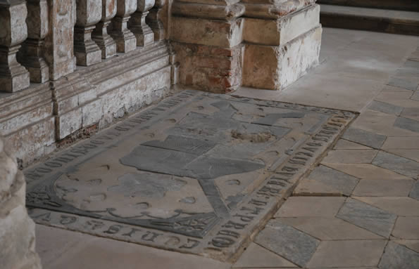prezbiterium, płyta nagrobna Przemysława Ścinawskiego (fot. Andrzej Powidzki)