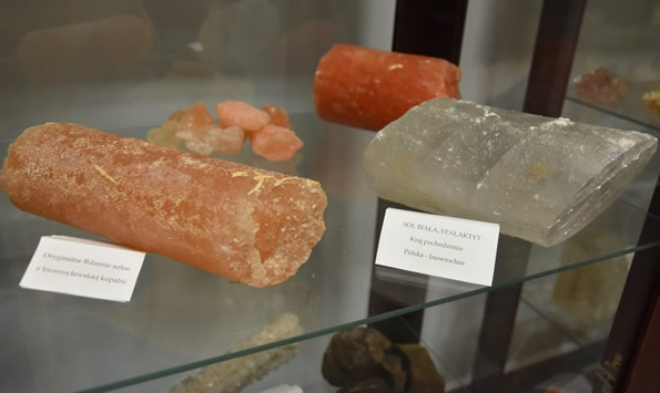 Inowrocław, Stała Wystawa Solnictwa. Oryginalne rdzenie solne, sól i stalaktyt z inowrocławskiej kopalni