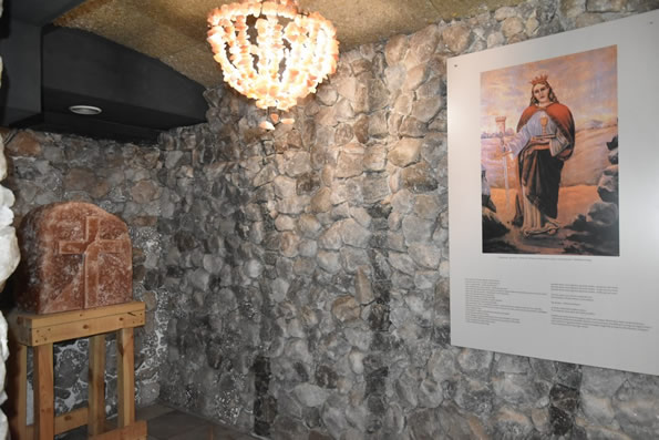 Inowrocław, Teatr Miejski - Stała Wystawa Solnictwa, kapliczka górnicza z wyrzeźbionym krzyżem w soli i solnymi żyrandolami oraz obrazem św. Kingi i obrazem św. Barbary pochodzącym z holu pomp na poziomie V (kopia), namalowanym w 1947 r. przez górnika F. Mikołajewskiego