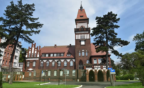 Inowrocław, aleja Ratuszowa 36, neogotycki, piętrowy budynek ratusza z wysoką wieżą budowano z myślą, że budynek będzie swoją architekturą podobny do zamków krzyżackich