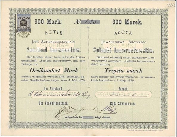 Zygmunt Wilkoński był inicjatorem powstania i głównym udziałowcem zarejestrowanej 4 maja 1875 roku w Królewskim Sądzie Powiatowym w Inowrocławiu spółki pod nazwą "Towarzystwo Akcyjne Solanki Inowrocławskie" wraz z nim założycielami towarzystwa byli adwokaci: Niemiec Oskar Triepcke i Żyd Samuel Hoeniger. Pierwsze walne zebranie spółki odbyło się 10 czerwca 1875 roku, po którym natychmiast spółka przystąpiła do wykupienia od miasta Inowrocław terenu pod budowę zakładów kąpielowych i parku zdrojowego.