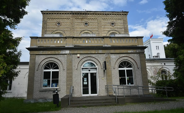 zdjęcie z 2020 r - tak wygląda obecnie dawne główne wejście do pierwszego zakładu kąpielowego (strona zachodnia)
