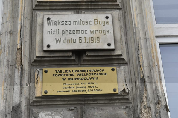 tabliczka upamiętniająca Powstanie Wielkopolskie na budynku przy ul. Dworcowej 41