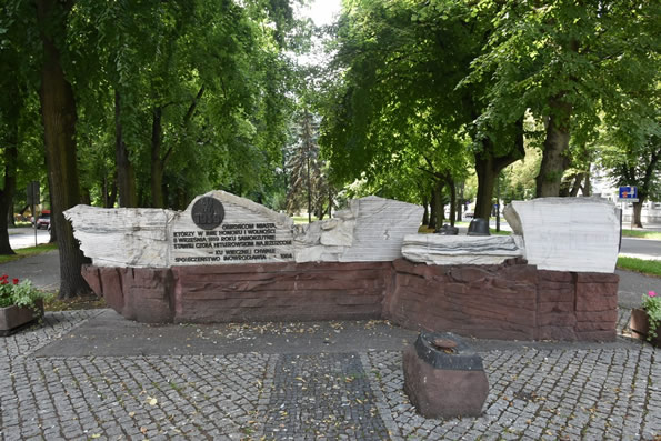pomnik ku pamięci Zygmunta Wilkońskiego z nową tablicą, odsłonięty 30 czerwca 1956 r. Pomnik ustawiono w miejscu zniszczonego podczas okupacji obelisku z 1937 r.