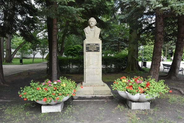 pierwszy pomnik dedykowany dr Zygmuntowi Wilkońskiemu, zdjęcie z 1937 r., zniszczony podczas okupacji niemieckiej