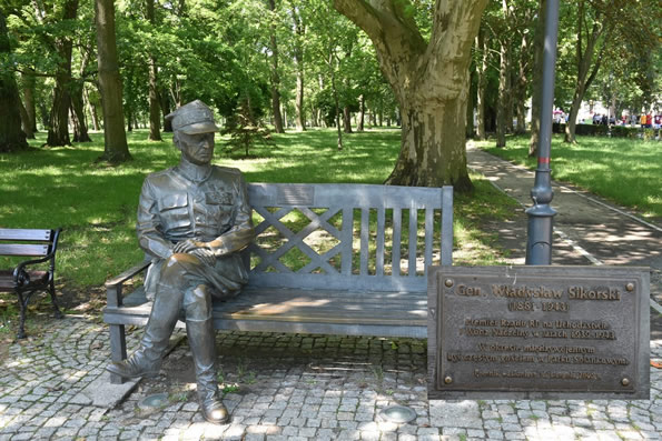 pomnik- ławeczka na której "przysiadł" gen. Władysław Sikorski