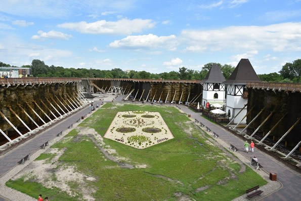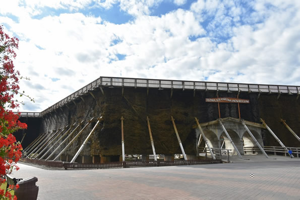 tężnia wewnątrz, widok z tarasu widokowego znajdującego się na szczycie tężni