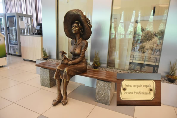 W pijalni znajduje się kawiarnia w której na ławeczce "przysiadła" uśmiechnięta Starsza Pani z pieskiem na kolanach. Do ławeczki przymocowano niewielką tabliczkę z napisem: "Teściowa nam gdzieś przepadła. Jest szansa, że w Pijalni zasiadła". Obiekt oddano do użytku 25 kwietnia 2013 roku.