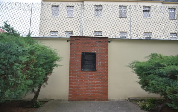 tablica upamiętniająca tragiczne wydarzenia w inowrocławskim więzieniu podczas okupacji i po wojnie