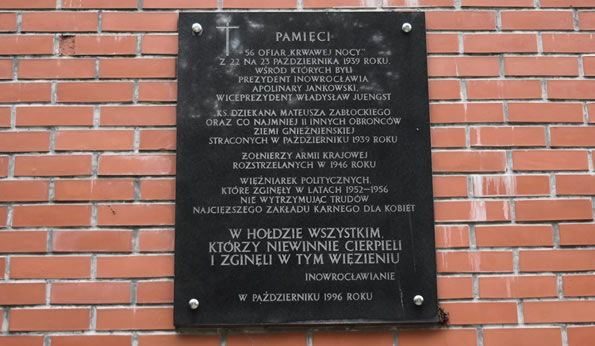 W nocy, z niedzieli na poniedziałek - 22/23 października 1939 roku, doszło do wielkiej zbrodni przeciwko ludzkości dokonanej na terenie więzienia w Inowrocławiu. Winni zabójstwa i znęcania się nad więźniami Polakami, faszystowsko hitlerowscy zbrodniarze stanęli przed nazistowskim Sądem Specjalnym w Poznaniu - (Sondergericht Posen).