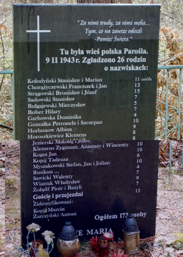 Do największych mordów na Polakach doszło w 1943 roku. Zapoczątkował je w lutym atak bojówek bulbowskich na kolonię Parośla I na Wołyniu, w którego trakcie zginęło 173 Polaków. W okresie Wielkanocy zginęło około 1300 Polaków, w co najmniej 57 miejscowościach.