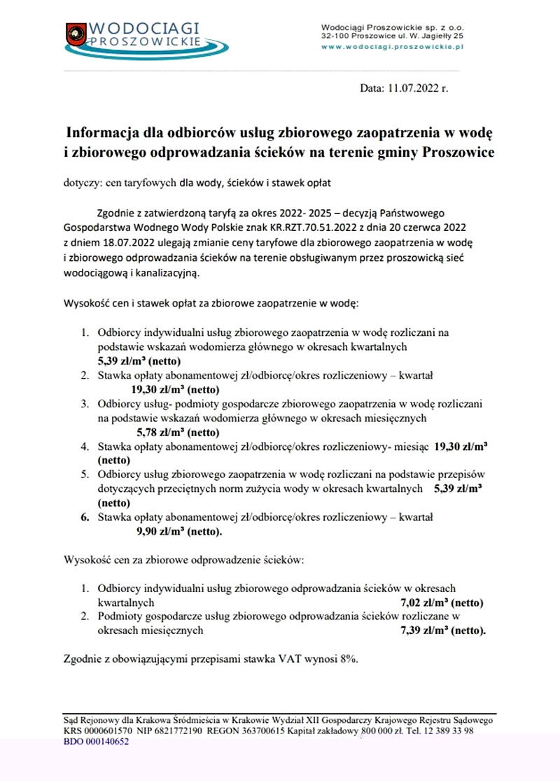 Skoro wszyscy, to dlaczego nie MY, doszli do wniosku zarządzający firmą Wodociągi Proszowickie i wczoraj na swoim facebooku (może dla ochłodzenia gorących głów) wylali na nasze głowy ZIMNY PRYSZNIC informując o podwyżkach. Nie jestem pewny czy ochłodziło to emocje dyskusji o wysokich cenach, ale na pewno mocno wkurzyło mieszkańców proszowickiej gminy. Poniżej nowe ceny: