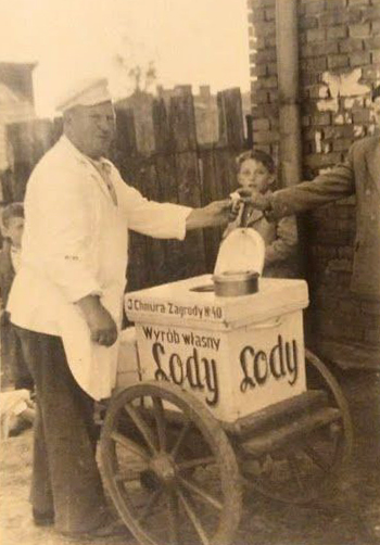 Dziś ciekawi mnie, skąd w tamtych latach p. Chmura osiągał latem niską temperaturę potrzebną do wytworzenia lodów, skoro nie było jeszcze mowy o istnieniu lodówek, nie mówiąc o zamrażarkach. Z tyłu głowy przypomina mi się, że podobno wielu gospodarzy zdobywało lód z zamarzniętej Szreniawy, zwoziło go do piwnic i tam, w izolacji powietrznej potrafił on dotrwać do lata.