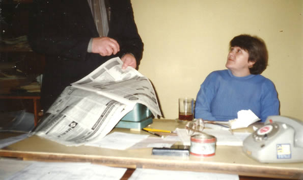 pani Anna Noga - pracownik księgowości, przy swoim biurku (fot. zbiory autora)