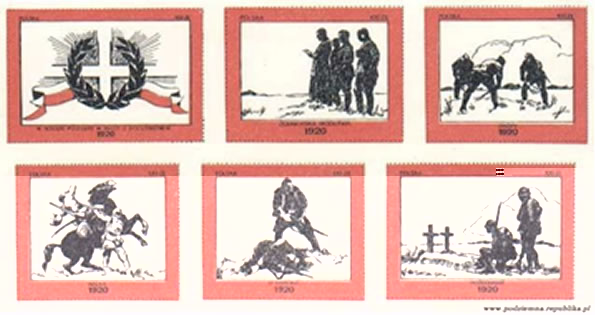 Blok w hołdzie poległam wojnie bolszewickiej. Jest to jeden z walorów filatelistycznych drugiego obiegu, wydany w 1985 r. w hołdzie poległym w walce z bolszewikami w 1920 roku. Znaczki oznaczają: górny rząd od lewej: W hołdzie poległym w walce z bolszewikami, Żołnierska modlitwa, Okopy, Walka, W obronie i ostatni znaczek Pożegnanie. Znaczki wydrukowano całościowo w bloku o formacie 16 x 9 cm. Autor bloczku nieznany