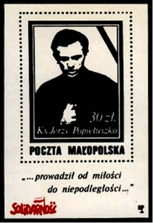 Zamordowany w 1984 r. kapelan Solidarności ks. Jerzy Popiełuszko był tematem wydawanych znaczków. Solidarność nigdy nie zapomniała o swoim kapłanie. Solidarność upamiętniła to tragiczne wydarzenie na wielu znaczkach, bloczkach i okolicznościowych kopertach.