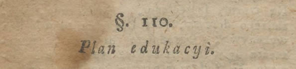 Naylepiey ten edukacyą opisał, kto powiedział, że tego się dzieci uczyć powinny co całe życie robić maią. Wieyski lud powinien mieć Religią, obyczaie, znać krai, obowiązki stanu rolniczego, przeznaczenie swoie, co iest miłość oyczyzny, całe gospodarstwo iego układ i wszystkie do niego potrzebne roboty umieć szczególnie przyczyny dla czego się ta lub owa i w tym czasie odbywa praca. Taki plan za fundament maiąc, całoroczne podzielił nauki. Co do Religii, obyczaiów, obowiązków stanu rolniczego przeznaczenia, i miłości oyczyzny, to wszystko wziął na siebie, reszta do Organisty należała. A że dzieci, przez swoią żywość, na iednym mieyscu długo siedzieć nie mogą, aniby z natężeniem lekcyi słuchały, zawsze robota ręczna do płci stosowna dołączona była.