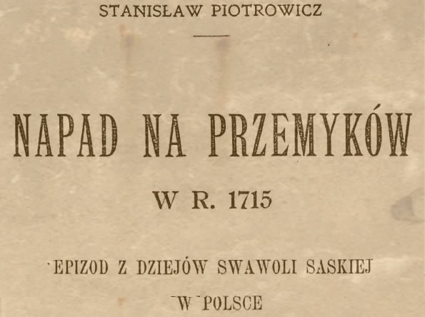 Niedawno dzięki operatywności jednego z współpracowników IKP udało nam się pozyskać książkę (niestety nie oryginał) Stanisława Piotrowicza z 1907 pod tytułem "Napad na Przemyków w r. 1715, epizod z dziejów swawoli saskiej w Polsce"...