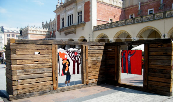 Co jakiś czas są podejmowane działania promujące tradycje sztuki ludowej, jakim było budownictwo wiejskie. I w tym roku podczas 48. Międzynarodowych Targów Sztuki Ludowej odbywających się krakowskim Rynku, można było zobaczyć i dotknąć fragmentu pamiątki materialnej. A taką jest ulokowany fragment konstrukcji drewnianej m.in. z "uratowanych" podczas wyburzania domów na terenie Krakowa i Małopolski. Całość ekspozycji dopełniają rysunki na płytkach ceramicznych w formie barwnej mozaiki.