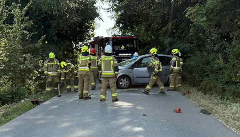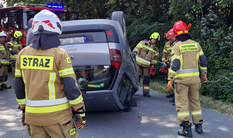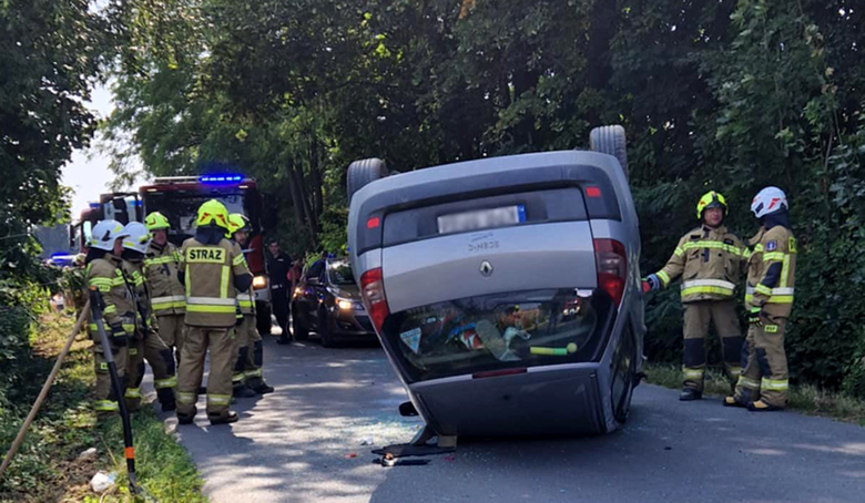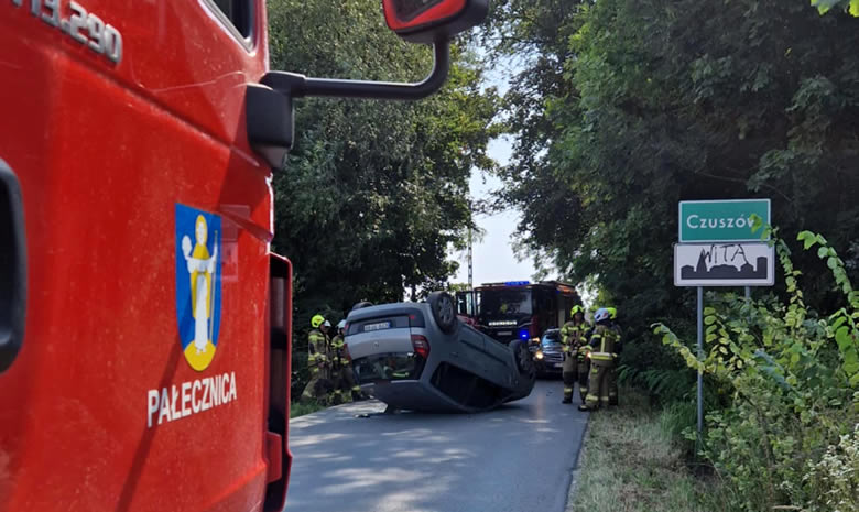Zdjęcia z dzisiaj. Dachowanie samochodu osobowego w Czuszowie.
