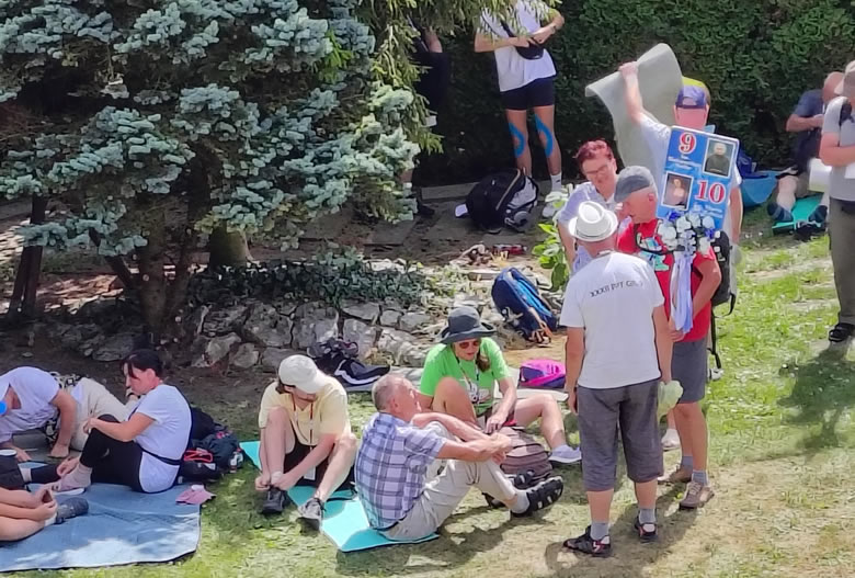 Jedna z grup gościła w ogrodzie Caritasu proszowickiego (zdjęcia tej grupy). Dzięki pomocy pracowników i licznych mieszkańców, którzy włączyli się w to wyjątkowe dzieło pielgrzymi mogli odpocząć i zjeść coś ciepłego i słodkiego!
