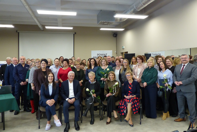 Podziękowano także obecnym na konferencji przedstawicielom organizacji pozarządowych za współpracę w realizacji zadań z zakresu pomocy społecznej, przeciwdziałaniu przemocy, wsparcia osób niepełnosprawnościami: Zespołowi Placówek Caritas w Proszowicach, Stowarzyszeniu Ruch na Rzecz Rozwoju Powiatu Proszowickiego Bartosz, Polskiemu Związkowi Emerytów, Rencistów i Inwalidów w Proszowicach, Towarzystwu Turystyki Regionalnej Proszowice.