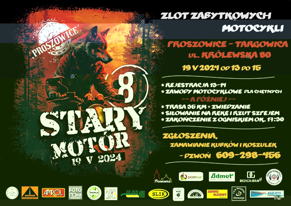 Zapraszamy na VIII Stary Motór w Proszowicach - zlot motocykli wyprodukowanych do 1990 roku. Start Proszowice - targowica ul. Królewska 80, w niedzielę, 19 maja, od godziny 13.00.