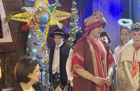 Była również wizyta Świętego Mikołaja, który nagrodził wszystkie dzieci prezentami. Śpiewaliśmy kolędy z grającym na gitarze Wojtkiem, uczniem klasy trzeciej SP nr 1 w Proszowicach. Wspólne kolędowanie trwało do późnych godzin wieczornych.