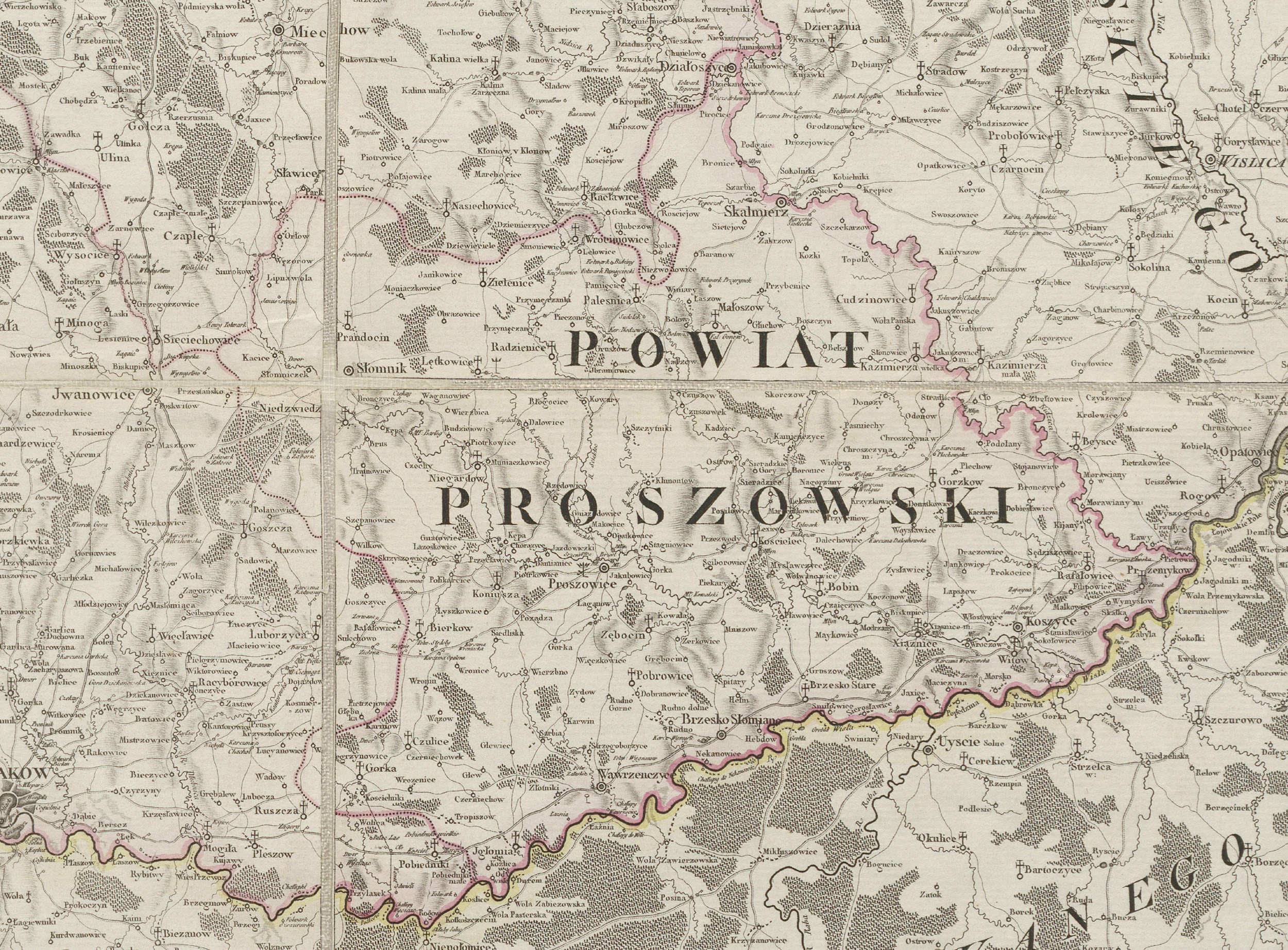 fragment mapy województwa krakowskiego i księstwa siewierskiego Karola Perthees z 1787 roku