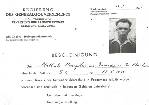 fragment zaświadczenia p. Mieczysława z kursu operatora maszyn spalinowych (fot. zbiory autora)
