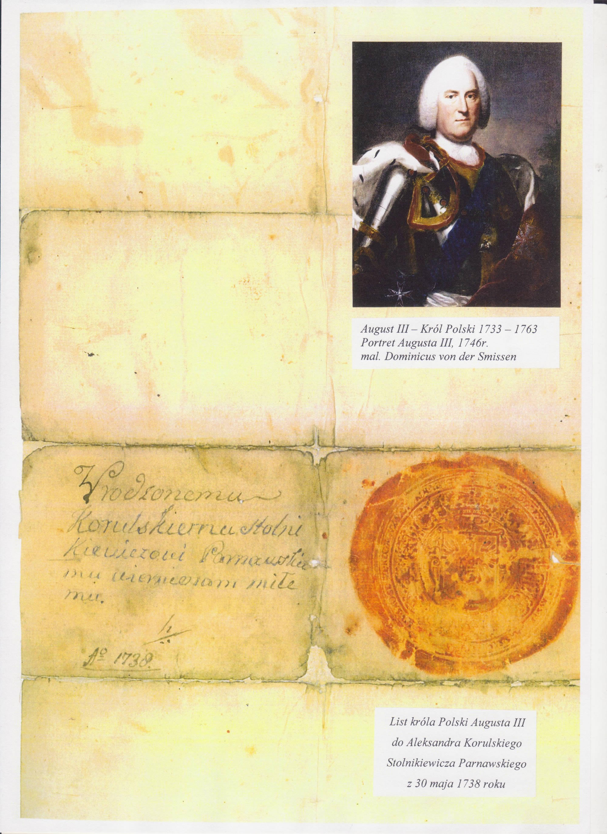 2 list, znajduje się w Archiwum Sejmu w Warszawie. Aleksander Kazimierz Korulski w 1753 r. otrzymał nominację na podsędka Księstwa Siewierskiego od Andrzeja Stanisława Załuskiego - biskupa krakowskiego.