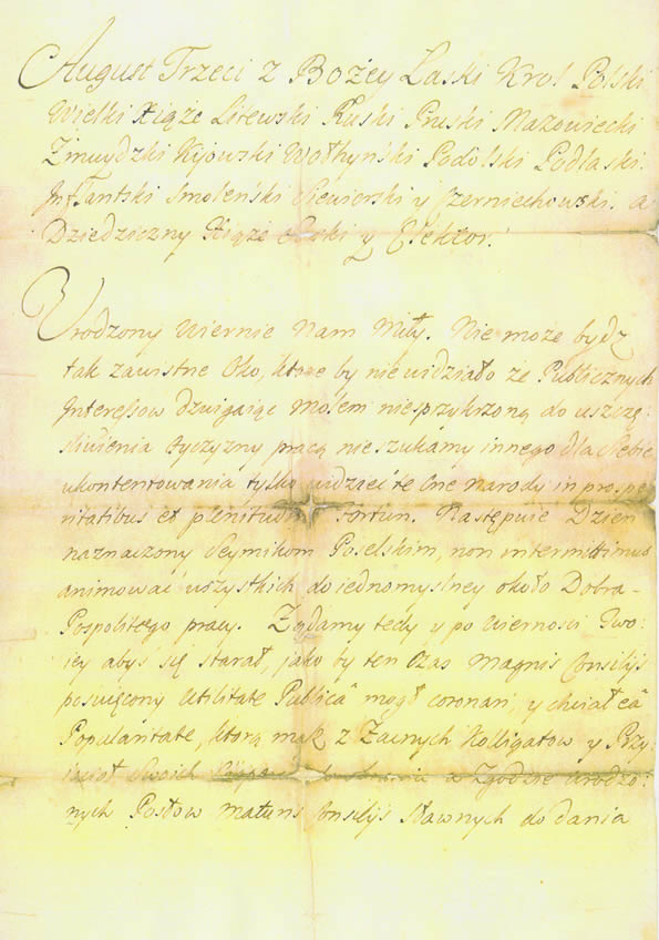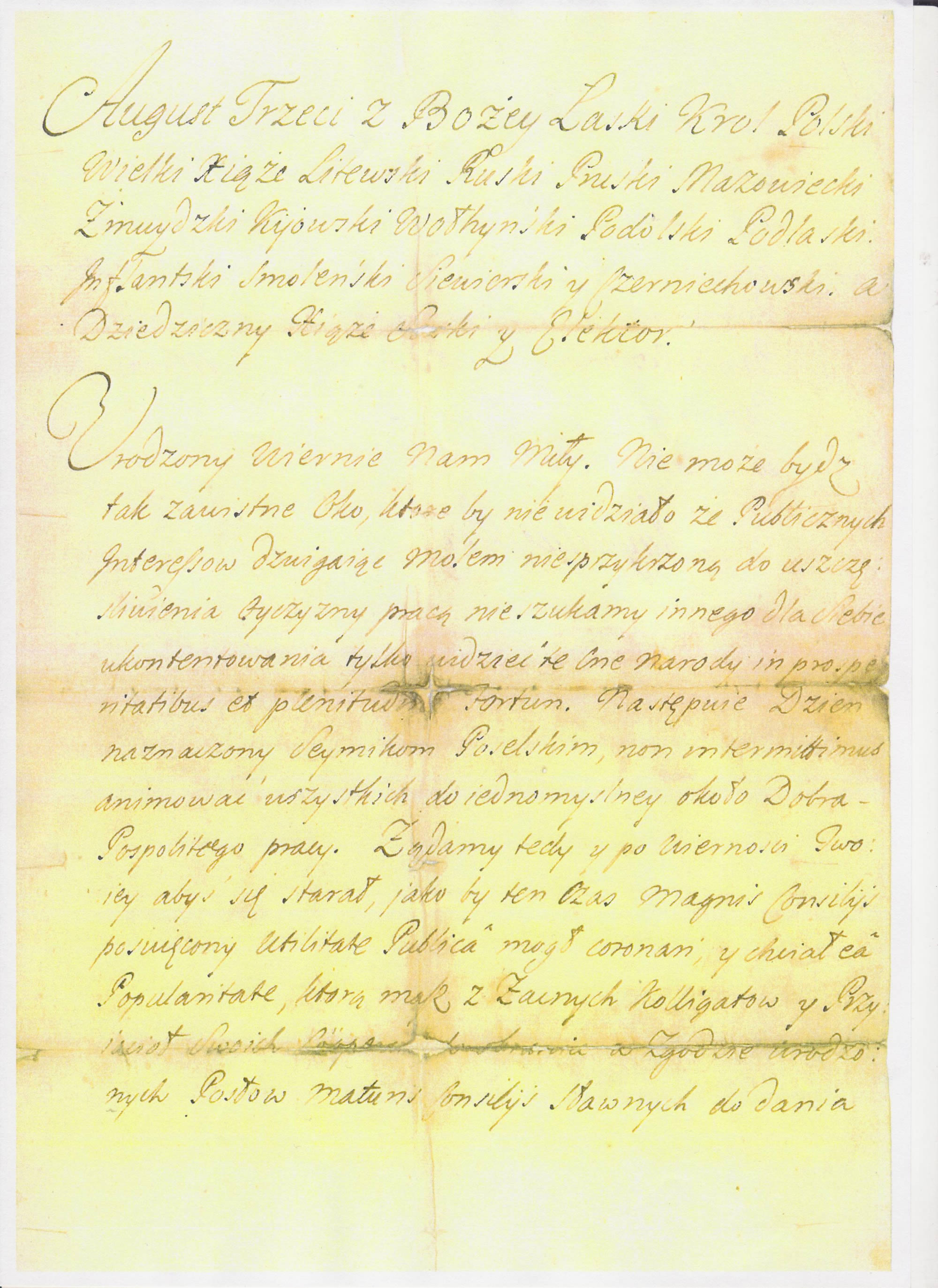 list króla Polski Augusta III do Aleksandra Korulskiego, stolnika Parnawskiego z 30 maja 1738 r. (fot. zbiory autora)