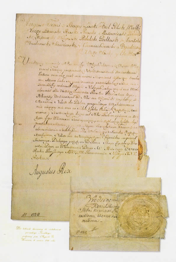 list królewski skierowany do stolnikiewicza parnawskiego Korulskiego przez Augusta III, Warszawa,11 czerwca 1758 r. (fot. zbiory autora)