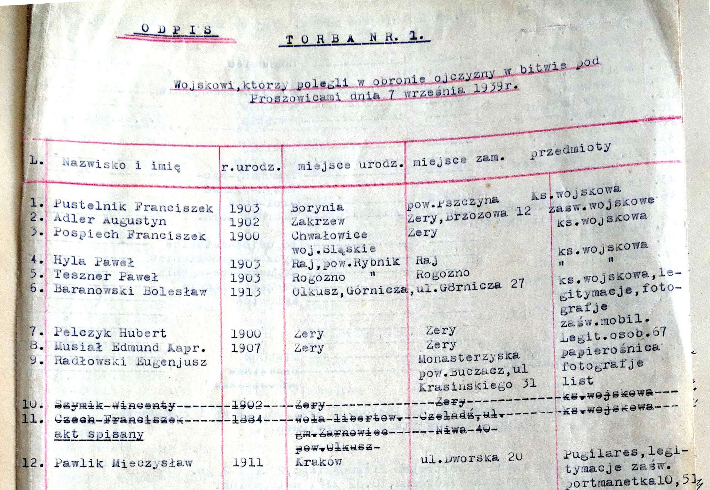 Wydawać by się mogło, że wydarzenia, które miały miejsce w Proszowicach i okolicy na początku września 1939 r. zostały dosyć dobrze opisane i nie mogą już skrywać żadnych tajemnic. Rozegrały się one przecież w relatywnie nieodległej przeszłości i miały wielu świadków, zarówno wśród wojskowych jak i cywilów, którzy swoją wiedzę na ich temat przekazali potomnym za pośrednictwem rozmaitych publikacji, które ukazywały się w prasie i książkach w ostatnich 83 latach. Także materiały z tego okresu zgromadzone w archiwach państwowych i wojskowych są bardziej dostępne. Faktem jednak jest, że dotychczas nie na wszystkie pytania udało się znaleźć odpowiedzi, pozostaje także kilka niewyjaśnionych okoliczności związanych z tamtymi wydarzeniami. Jedną z takich tajemnic być może udało się ostatnio wyjaśnić.