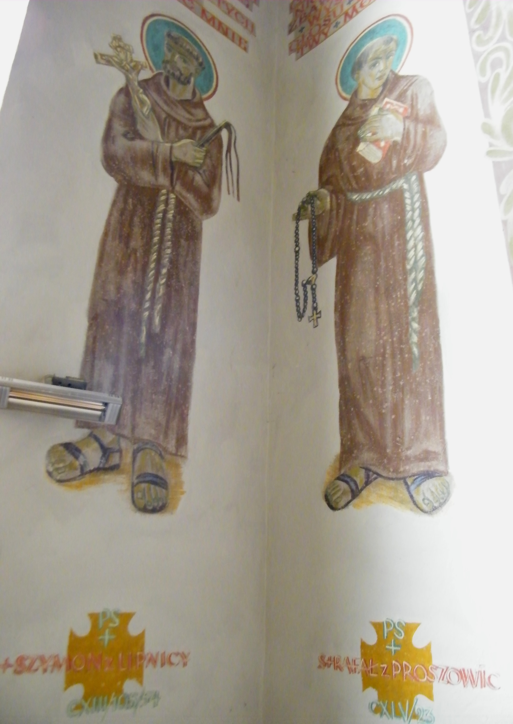 2.06.2023, Rafał z Proszowic na ścianie w bobińskim kościele (z prawej), po lewej stronie Szymon z Lipnicy