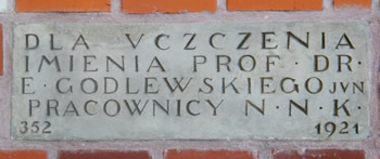 352.Dla uczczenia imienia prof.dr. E.Godlewskiego jvn-pracownicy N.N.K.1921. (ten botanik i chemik jest patronem Zespołu Szkół w Piotrkowicach Małych koło Proszowic. Rodzinnie związany z Klonowem, Kępiem koło Miechowa)