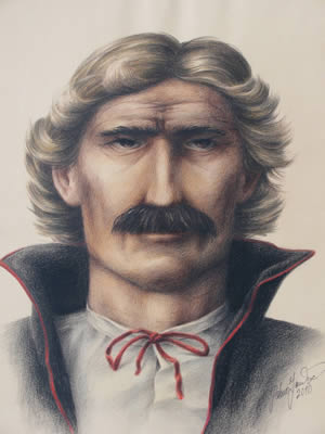 obraz kosyniera Bartosza Głowackiego z Rzędowic, patron ZS Proszowicach, namalowany w 2010 roku i podarowany szkole przez męża pani Eweliny