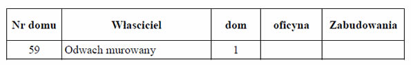 Łącznie: domów - 89, oficyn - 10, zabudowań gospodarczych - 112.