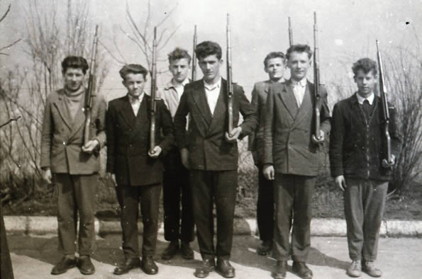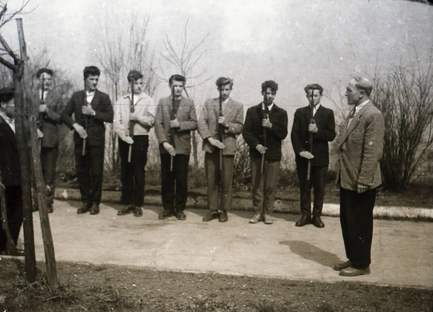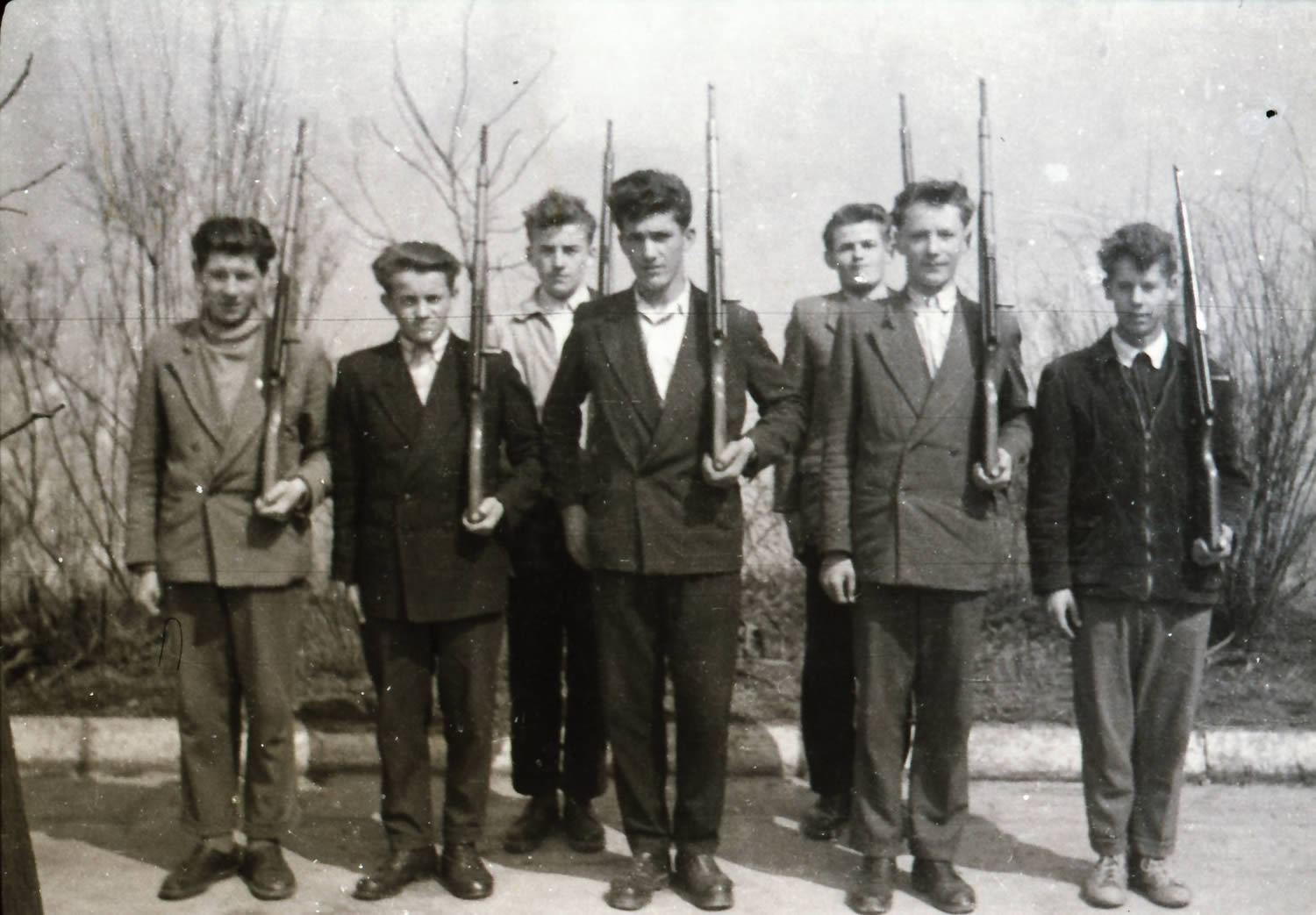 Parę zdjęć z zajęć PW (przysposobienie wojskowe - obronne) w okolicach parku miejskiego i stadionu w Proszowicach. Na zdjęciach: prof. PW Tadeusz Nakielski, Heniek Mucha, Henryk Pietras, Krzysztof Wilk, Stanisław Kula, Stanisław Margul, Zdzisław Czerwiec, Antoni Maj, Marian Watek i Stanisław Paluch, w różnej konfiguracji.