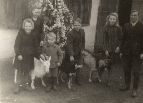 rodzina Adamskich przed swoim domem (fot. zbiory Ani Potęgi)
