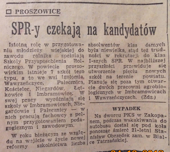 Źródło: Gazeta krakowska; 28 luty 1968 r.; nr 50; SPR-y czekają na kandydatów